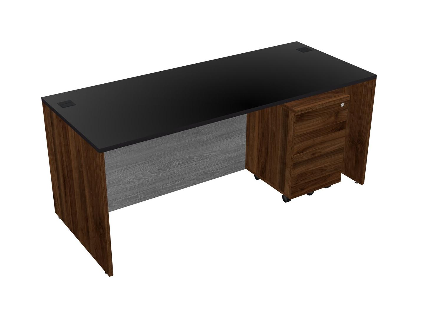 Black Rectangular Office Desk Plus Columbia Walnut Wooden Mobile Drawers