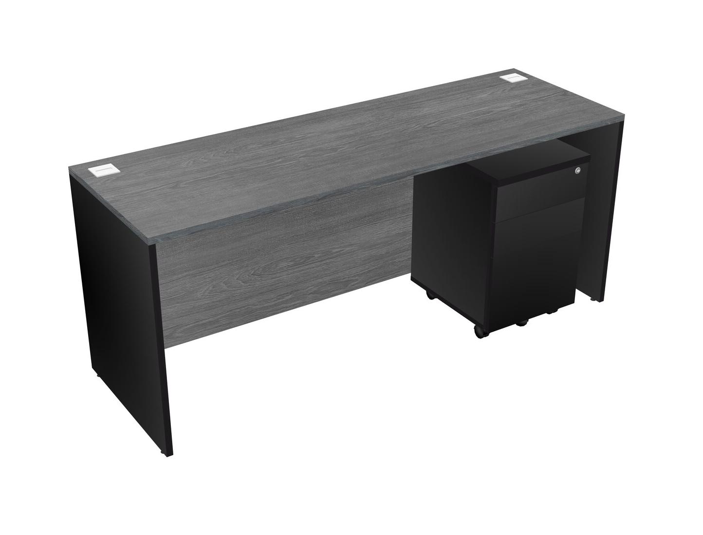 Grey Rectangular Office Desk Plus Black Wooden Mobile Drawers