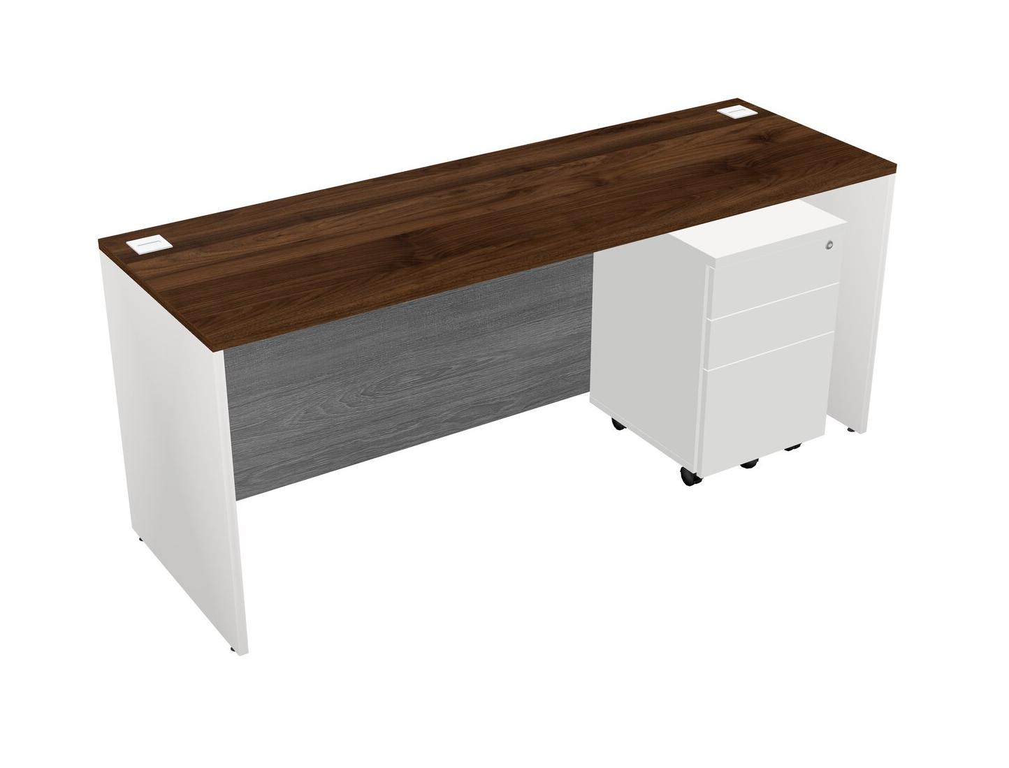 Columbia Walnut Rectangular Office Desk Plus White Wooden Mobile Drawers