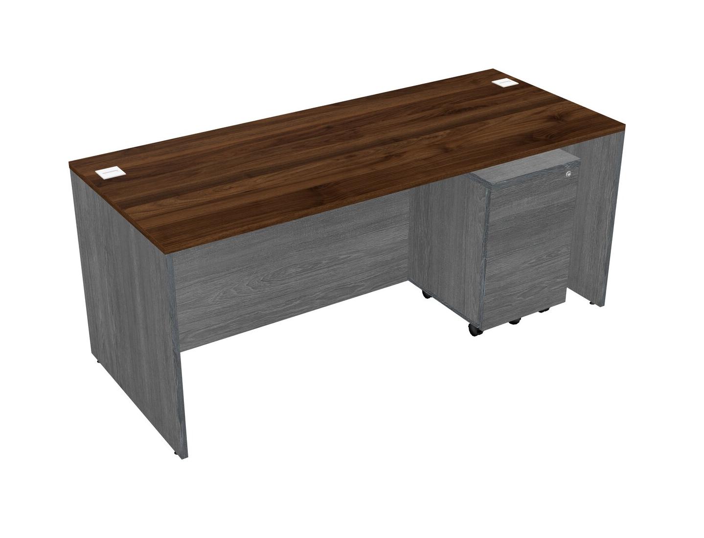 Columbia Walnut Rectangular Office Desk Plus Grey Wooden Mobile Drawers
