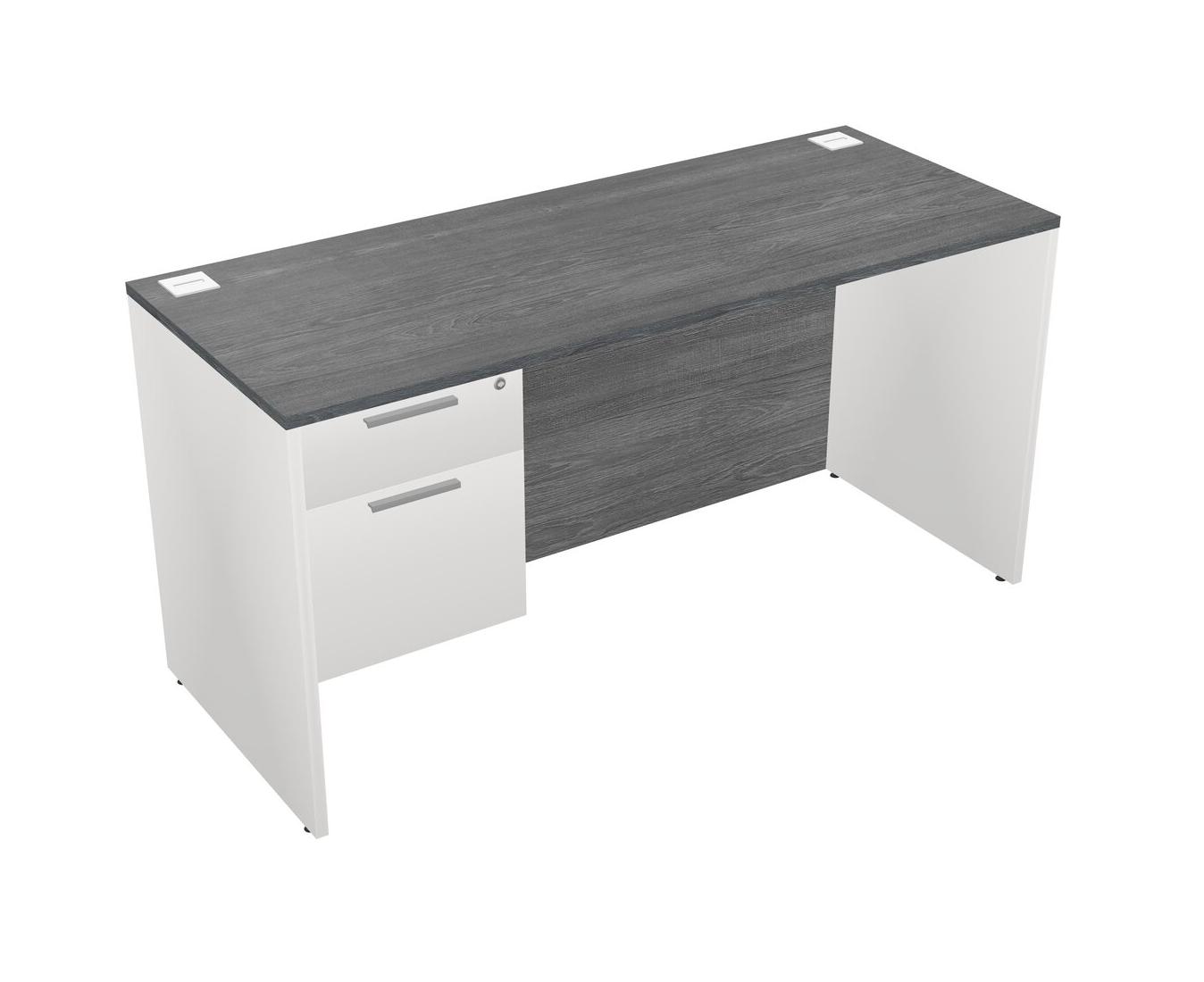 Grey Rectangular Office Desk Plus White Hanging Drawers