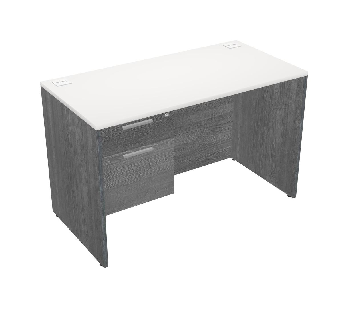 White Rectangular Office Desk Plus Grey Hanging Drawers