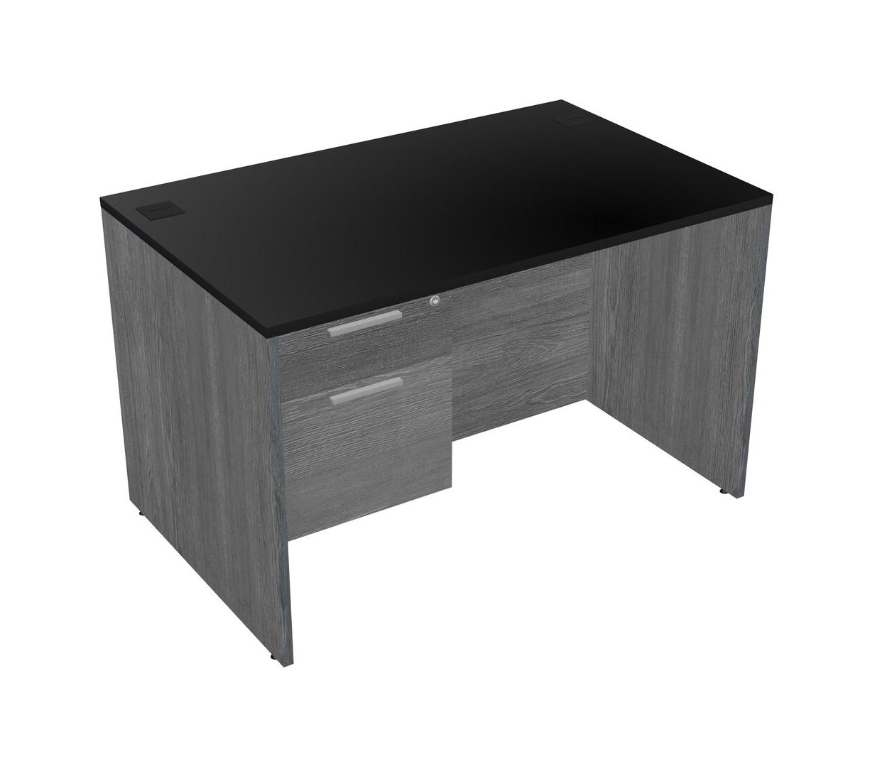 Black Rectangular Office Desk Plus Grey Hanging Drawers