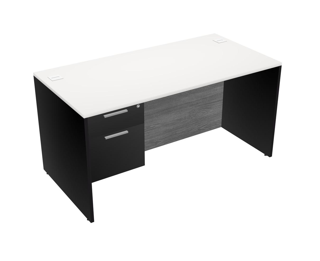 White Rectangular Office Desk Plus Black Hanging Drawers