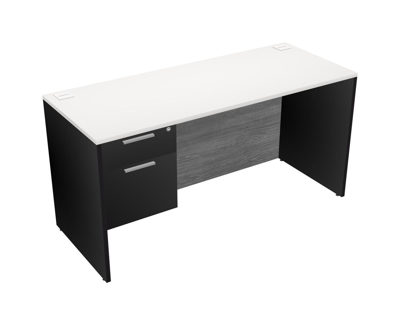 White Rectangular Office Desk Plus Black Hanging Drawers