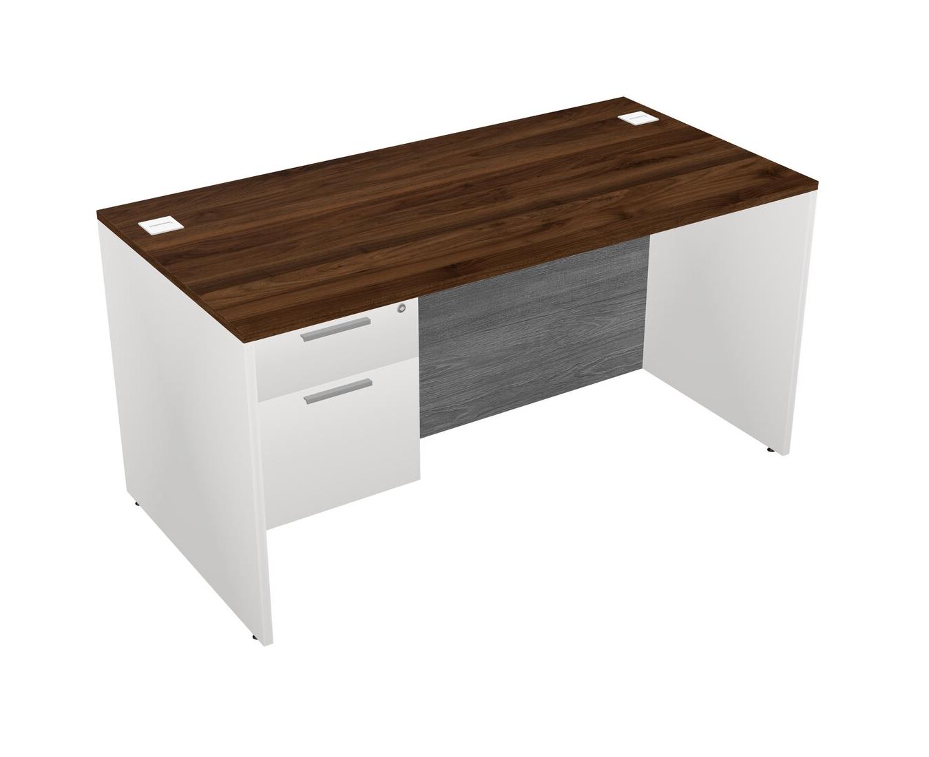 Columbia Walnut Rectangular Office Desk Plus White Hanging Drawers