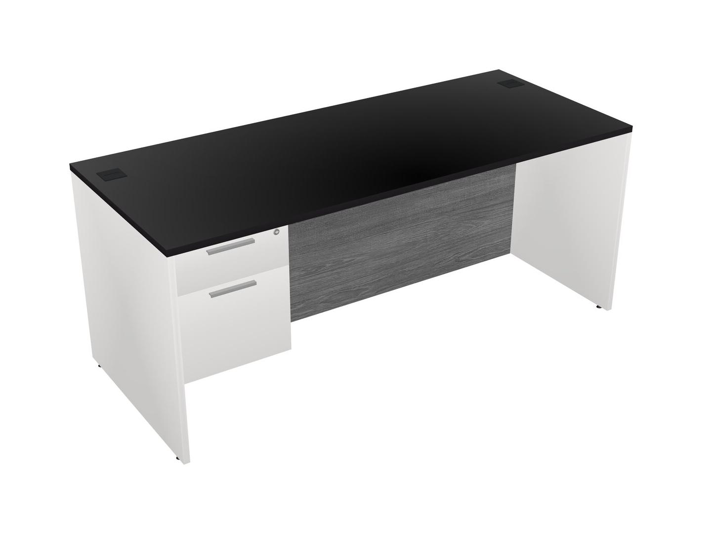 Black Rectangular Office Desk Plus White Hanging Drawers