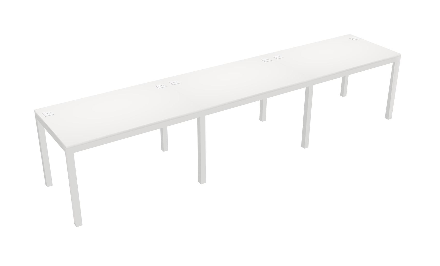 White Rectangular Office Desk For 3 Persons
