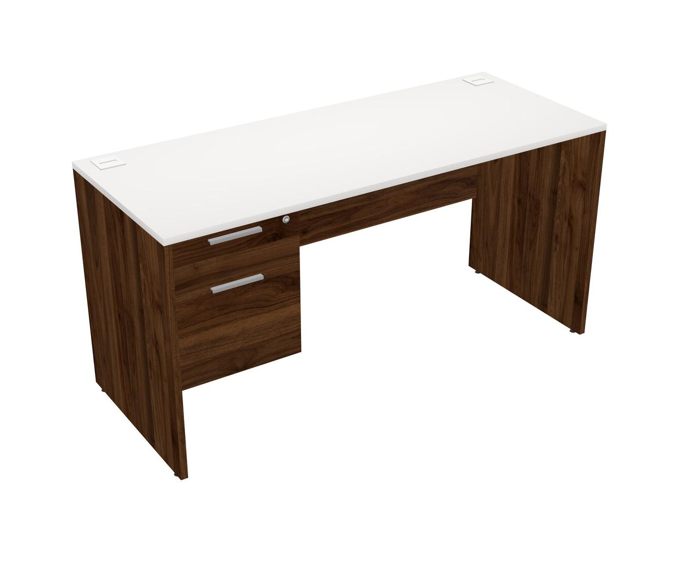 White Rectangular Office Desk Plus Columbia Walnut Hanging Drawers
