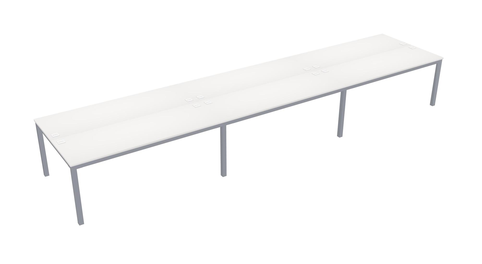 White Shared Rectangular Office Desk For 6 Persons