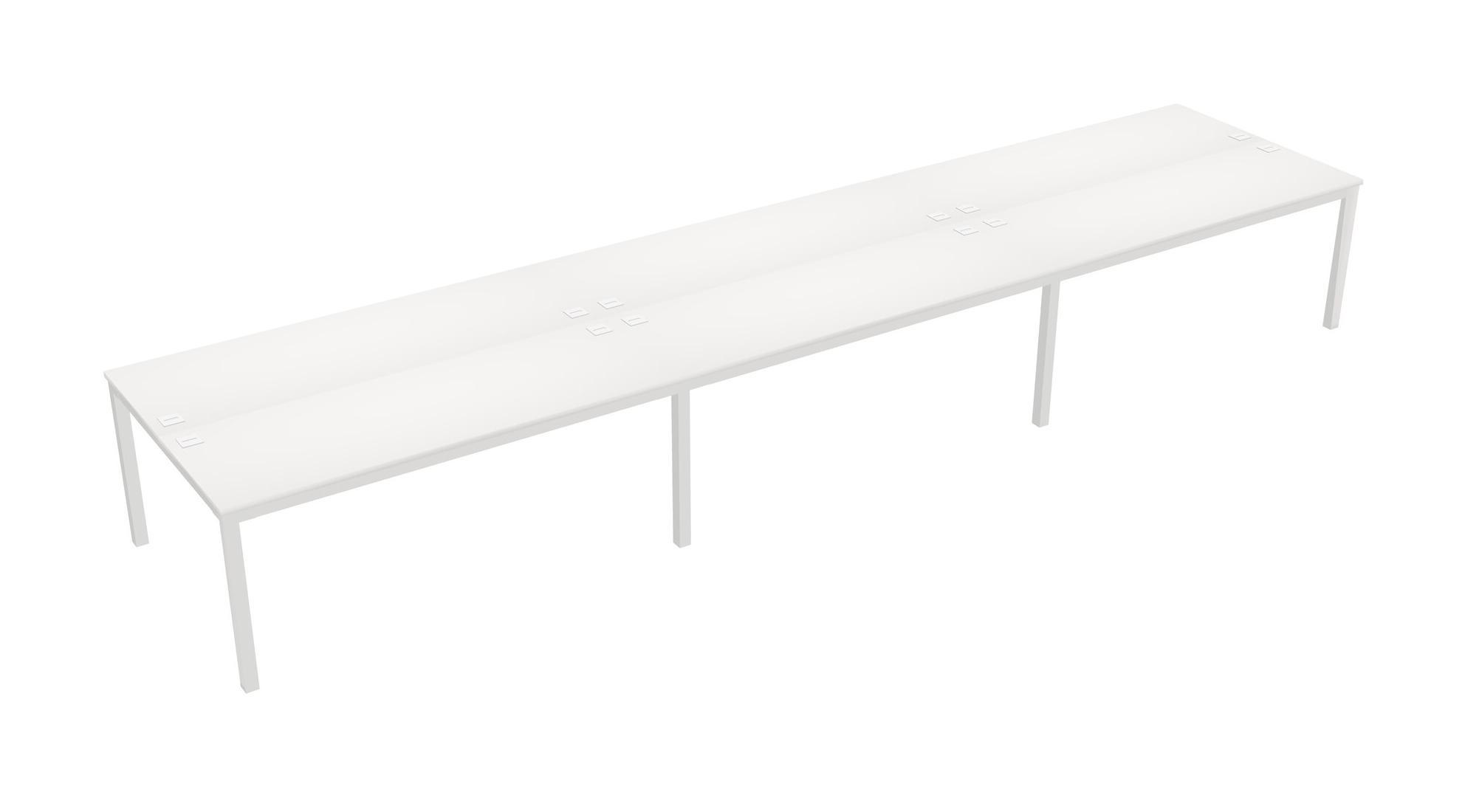 White Shared Rectangular Office Desk For 6 Persons