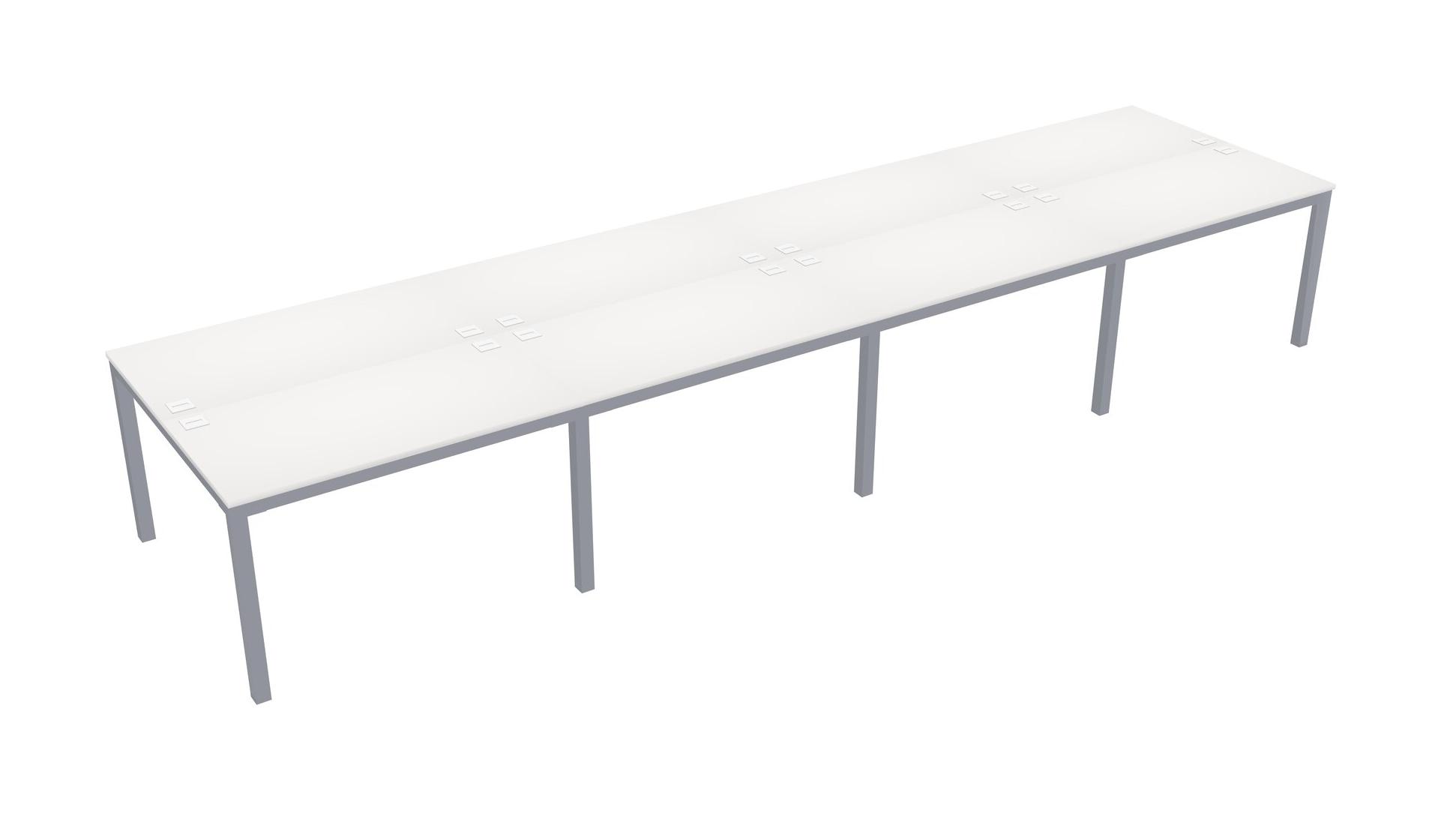 White Shared Rectangular Office Desk For 8 Persons