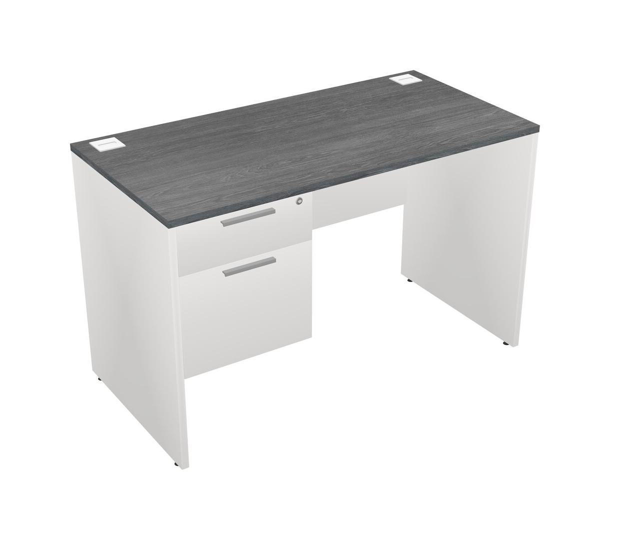 Grey Rectangular Office Desk Plus White Hanging Drawers