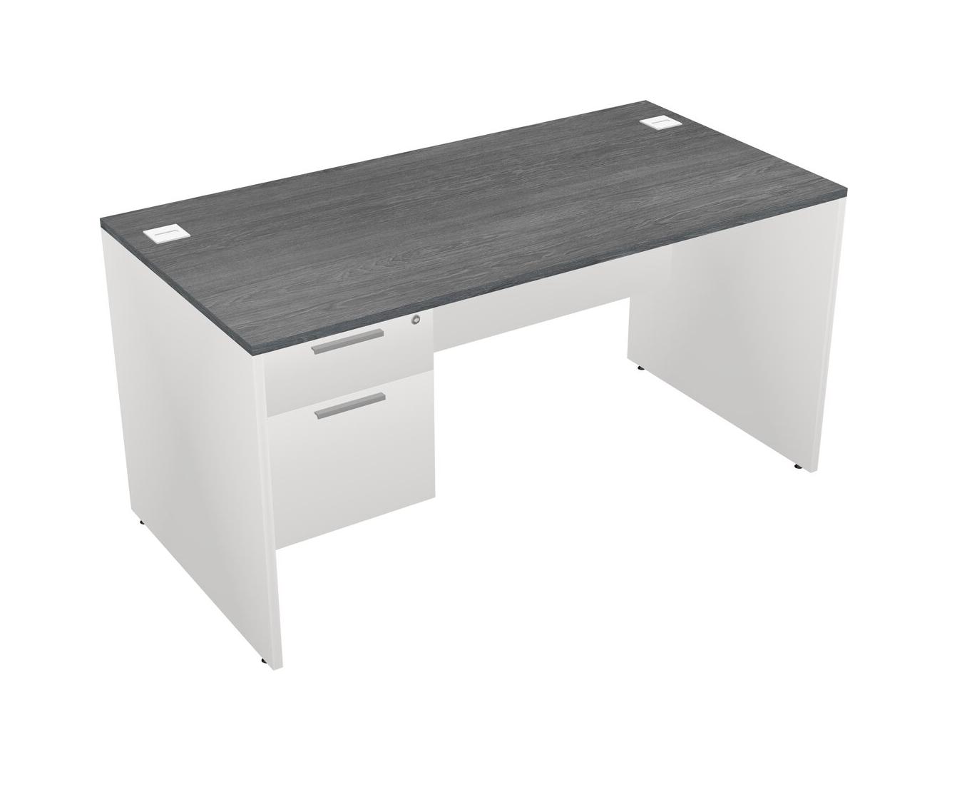 Grey Rectangular Office Desk Plus White Hanging Drawers