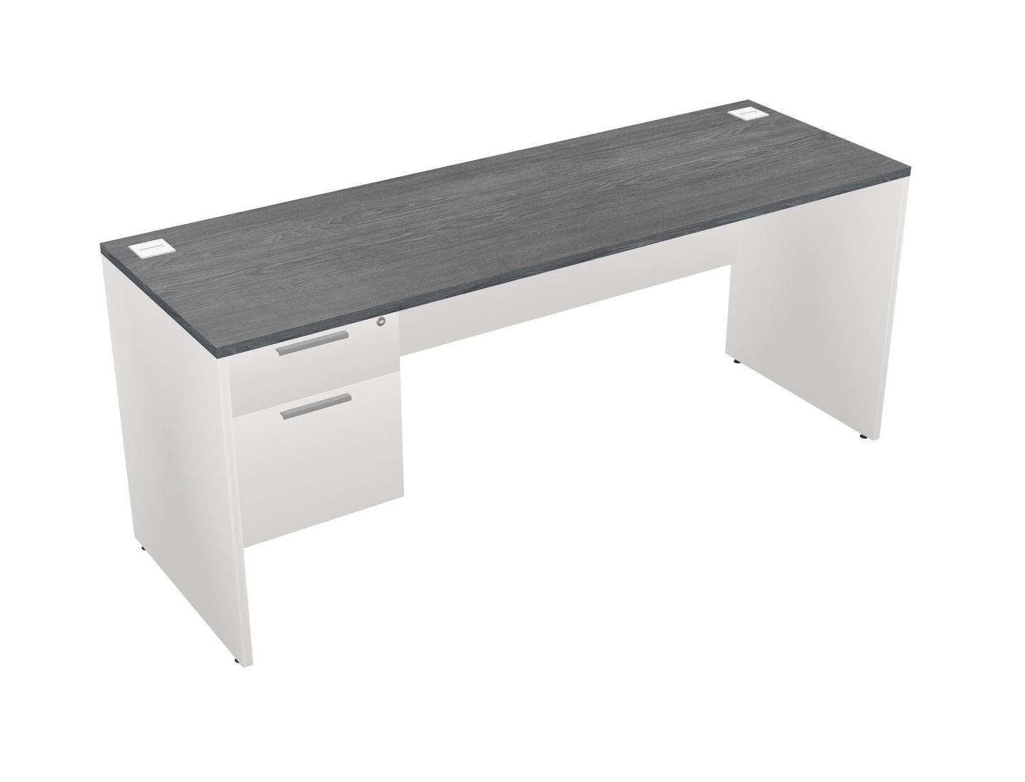 Grey Rectangular Office Desk Plus White Hanging Drawers