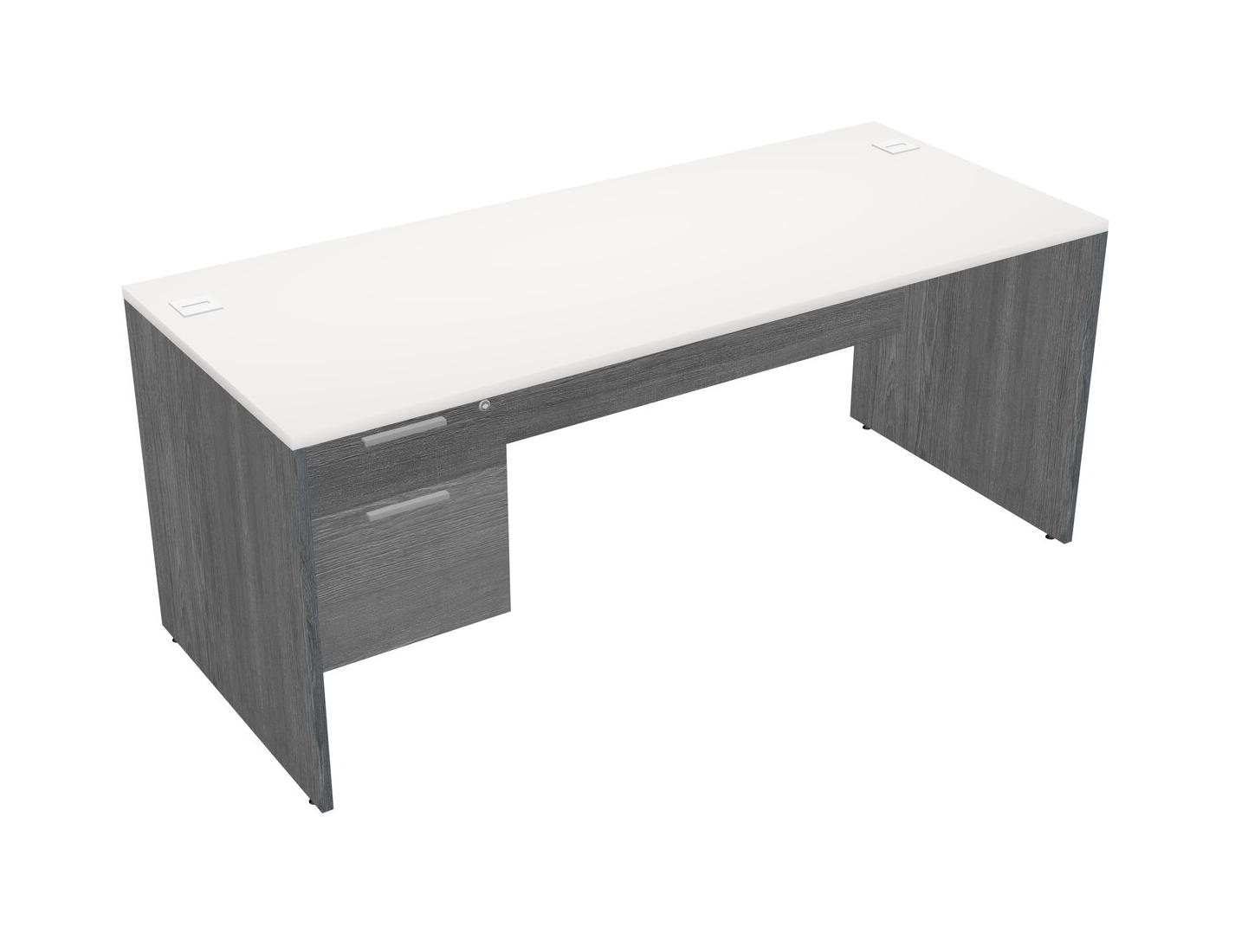 White Rectangular Office Desk Plus Grey Hanging Drawers