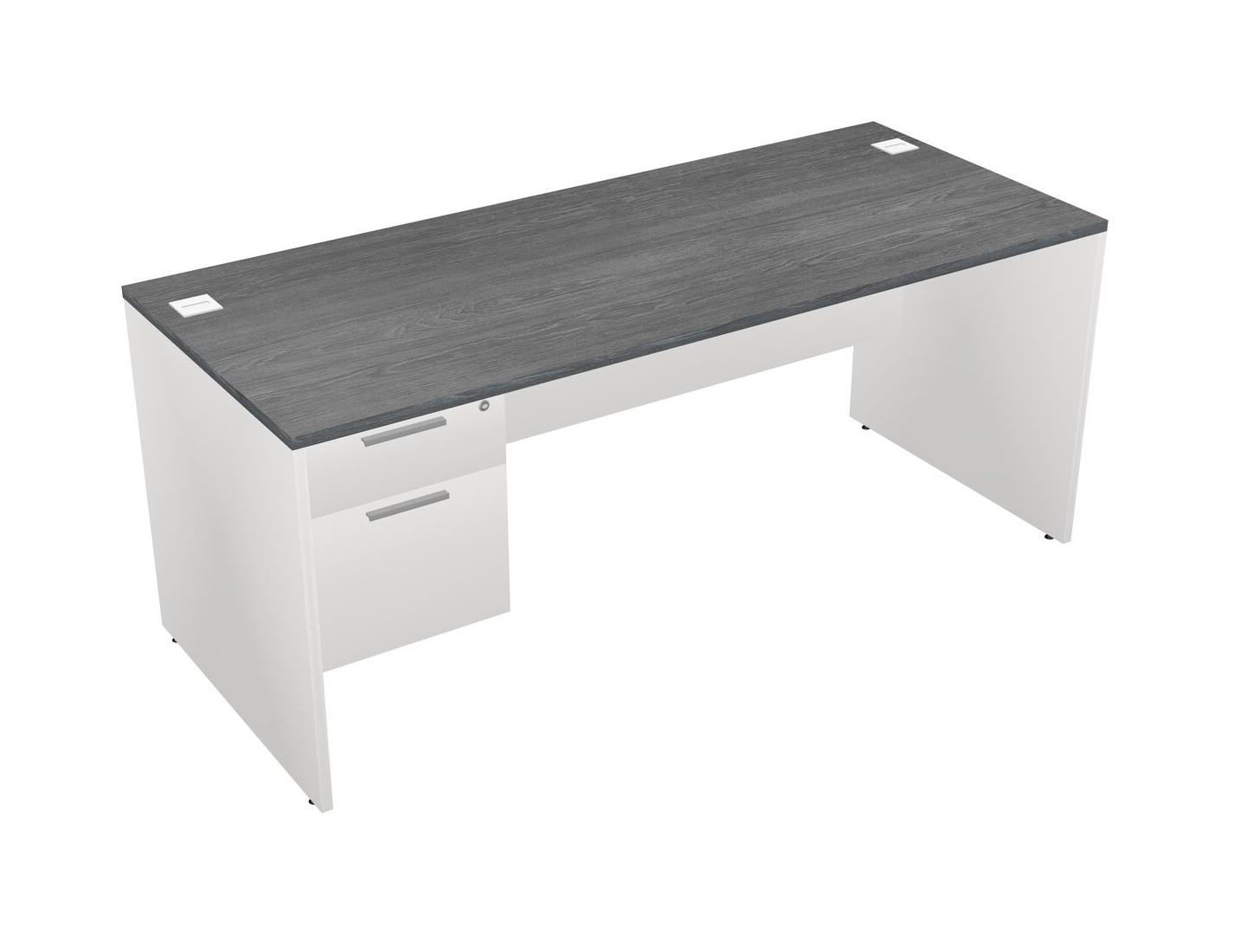 Grey Rectangular Office Desk Plus White Hanging Drawers