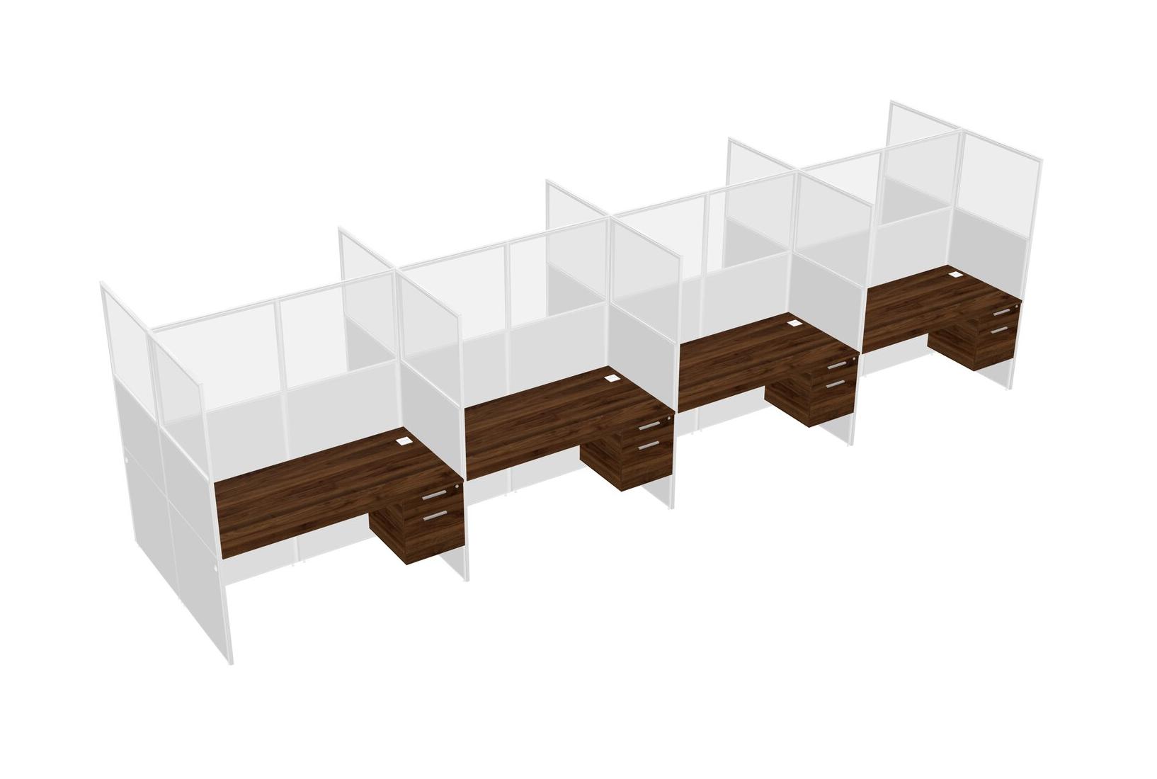 Columbia Walnut Shared Rectangular Office Cubicle Panel System With Hanging Drawers For 8 Persons