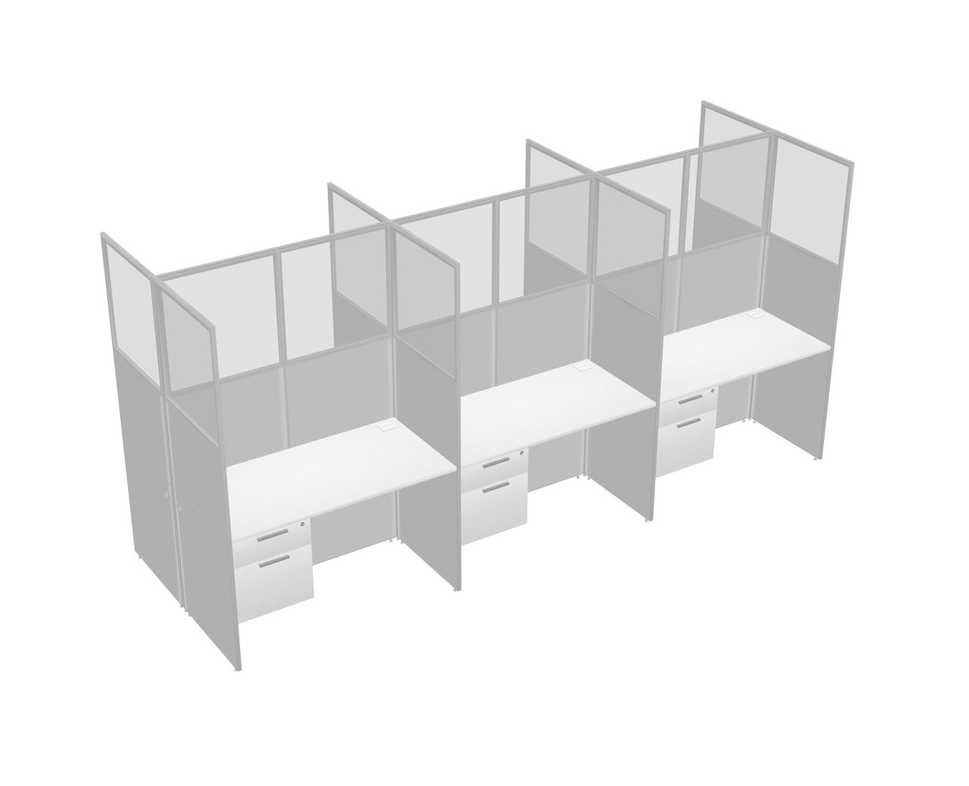 White Shared Rectangular Office Cubicle Panel System With Hanging Drawers For 6 Persons