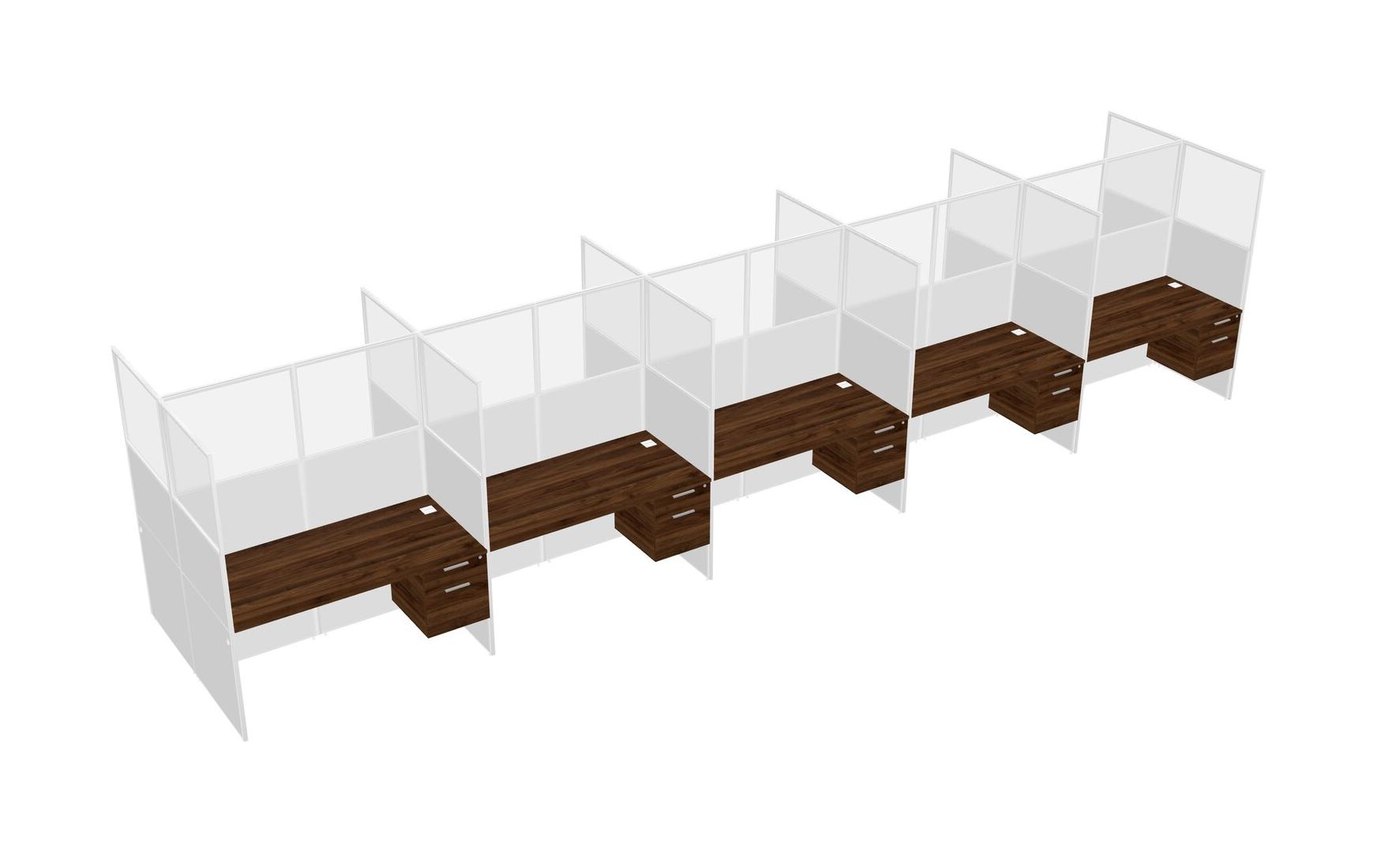 Columbia Walnut Shared Rectangular Office Cubicle Panel System With Hanging Drawers For 10 Persons