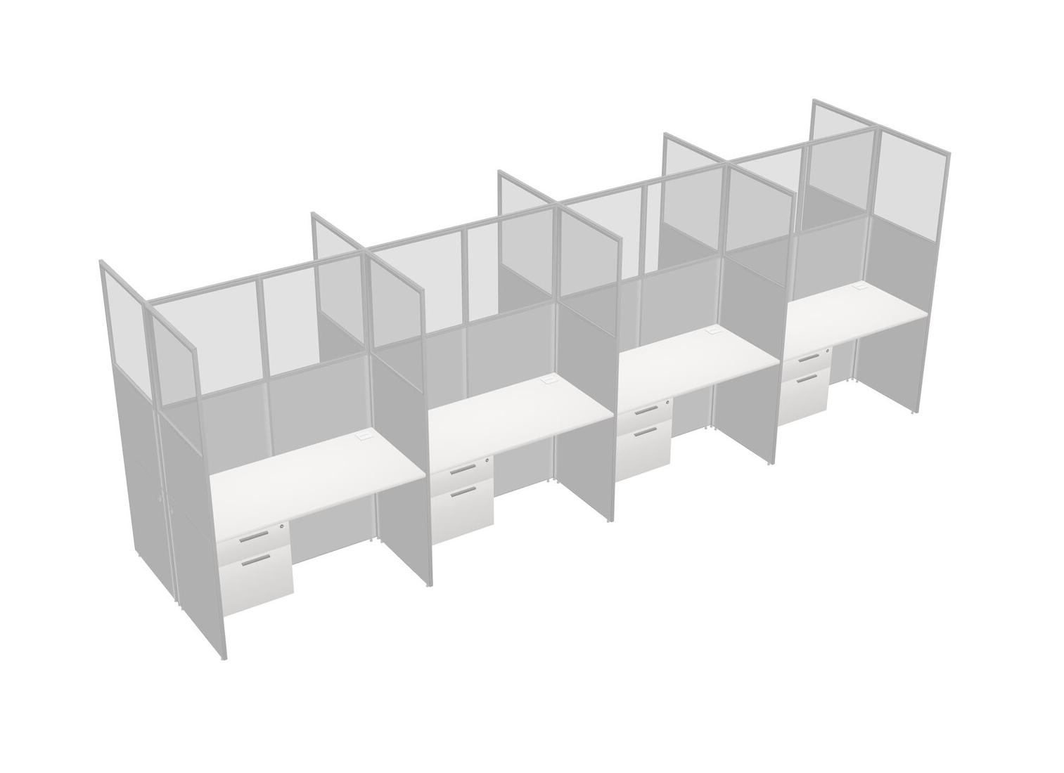 White Shared Rectangular Office Cubicle Panel System With Hanging Drawers For 8 Persons
