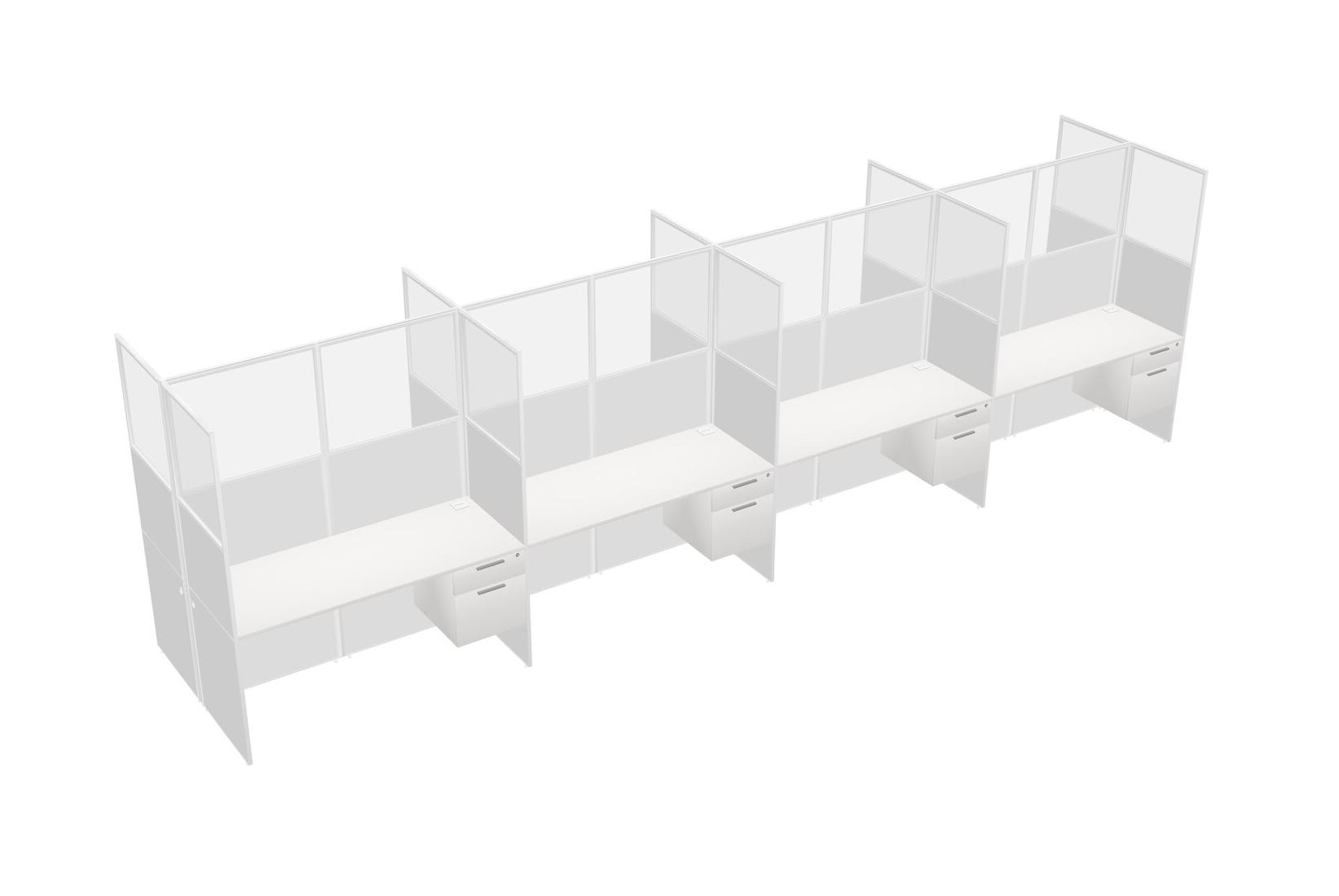 White Shared Rectangular Office Cubicle Panel System With Hanging Drawers For 8 Persons