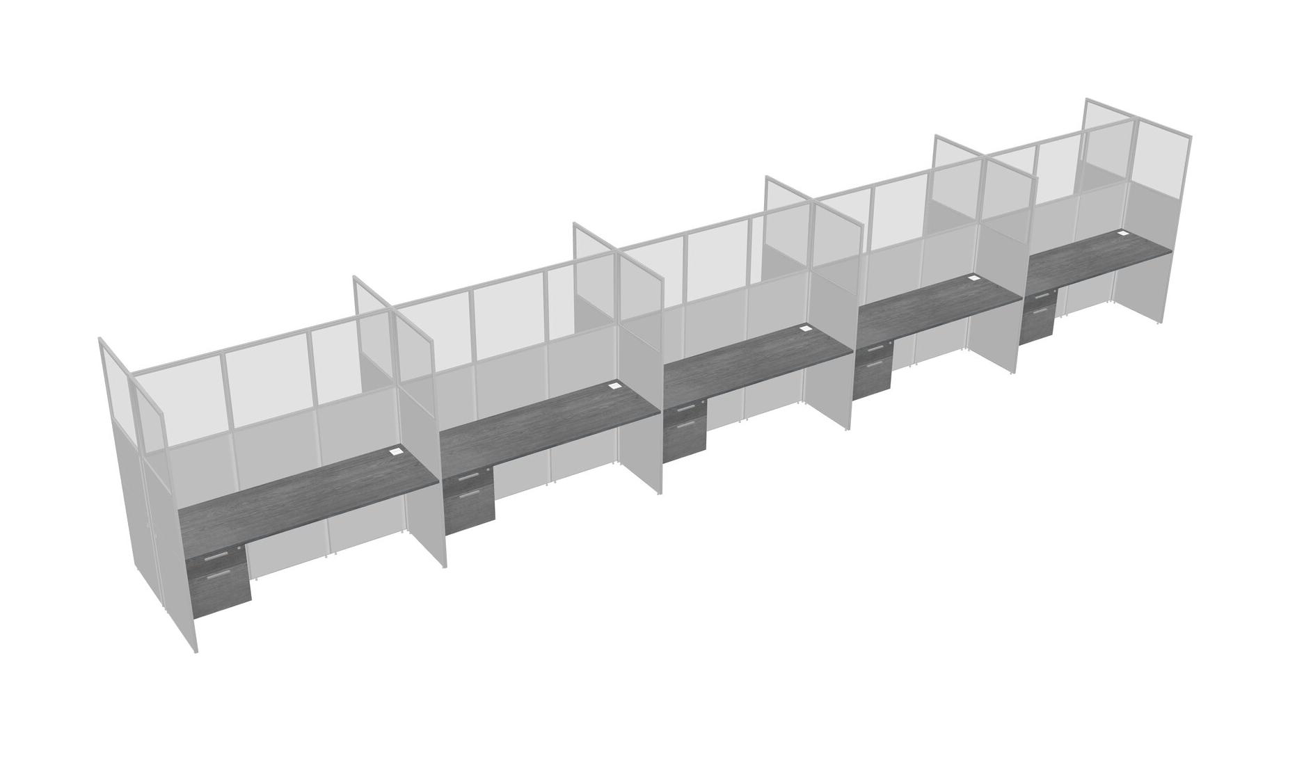 Grey Shared Rectangular Office Cubicle Panel System With Hanging Drawers For 10 Persons