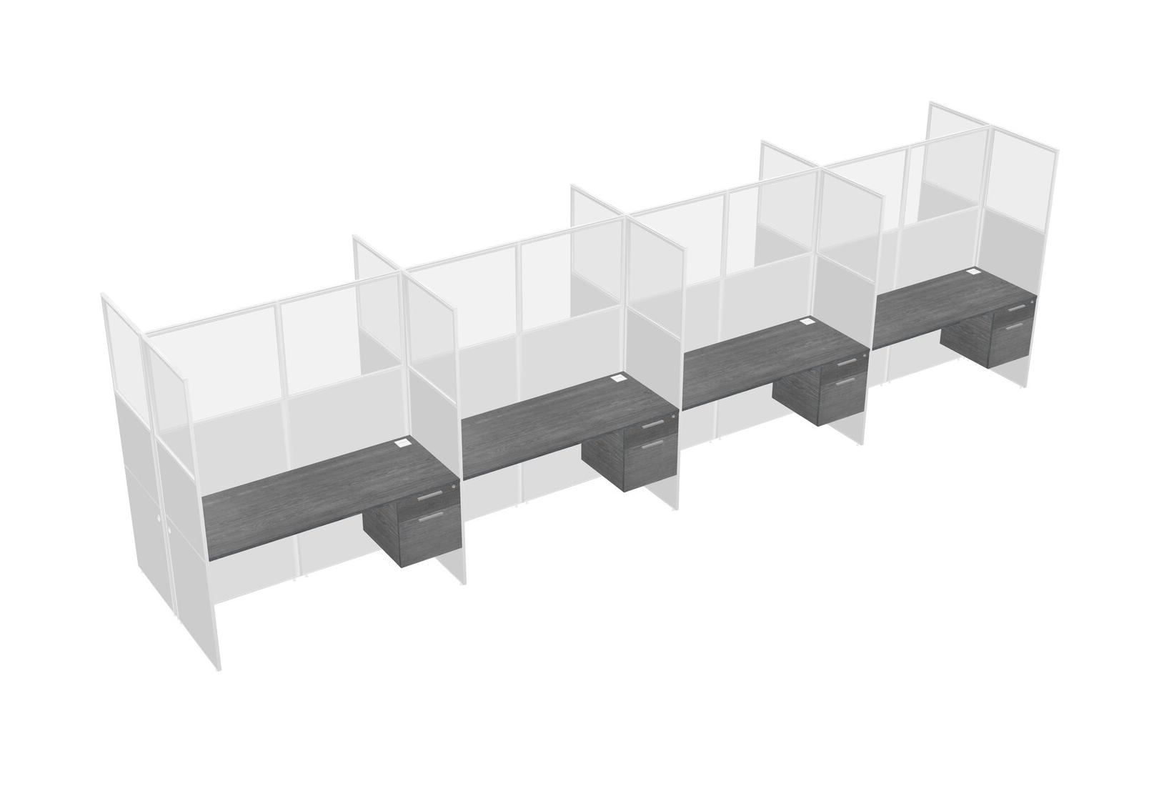Grey Shared Rectangular Office Cubicle Panel System With Hanging Drawers For 8 Persons