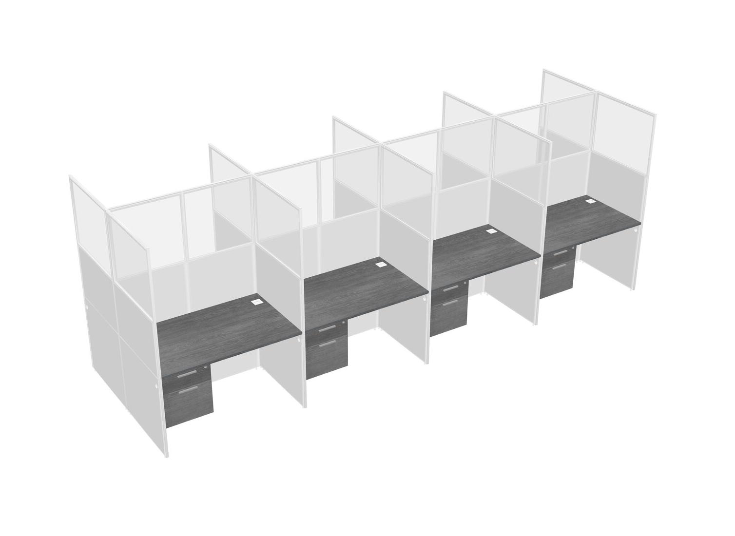 Grey Shared Rectangular Office Cubicle Panel System With Hanging Drawers For 8 Persons