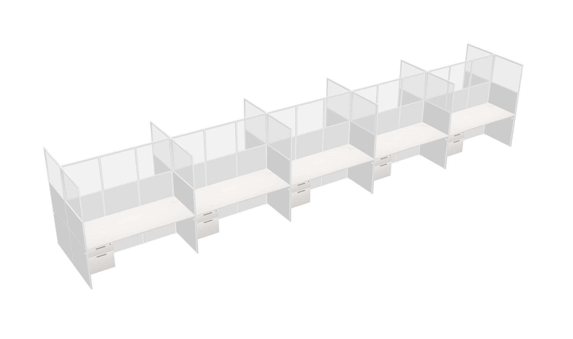White Shared Rectangular Office Cubicle Panel System With Hanging Drawers For 10 Persons