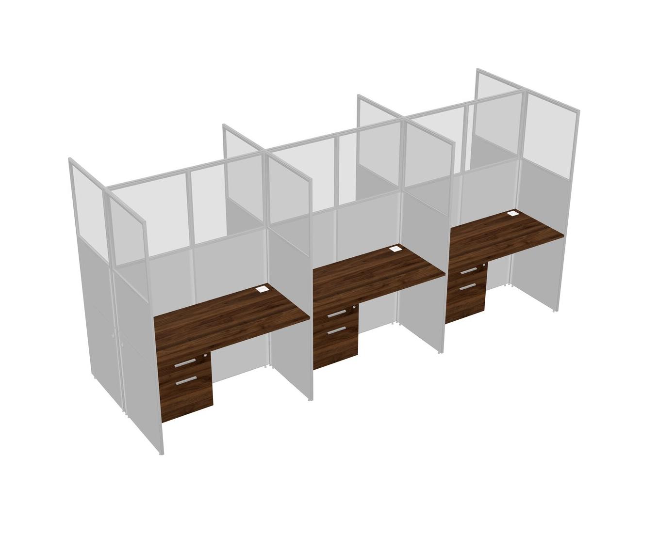 Columbia Walnut Shared Rectangular Office Cubicle Panel System With Hanging Drawers For 6 Persons