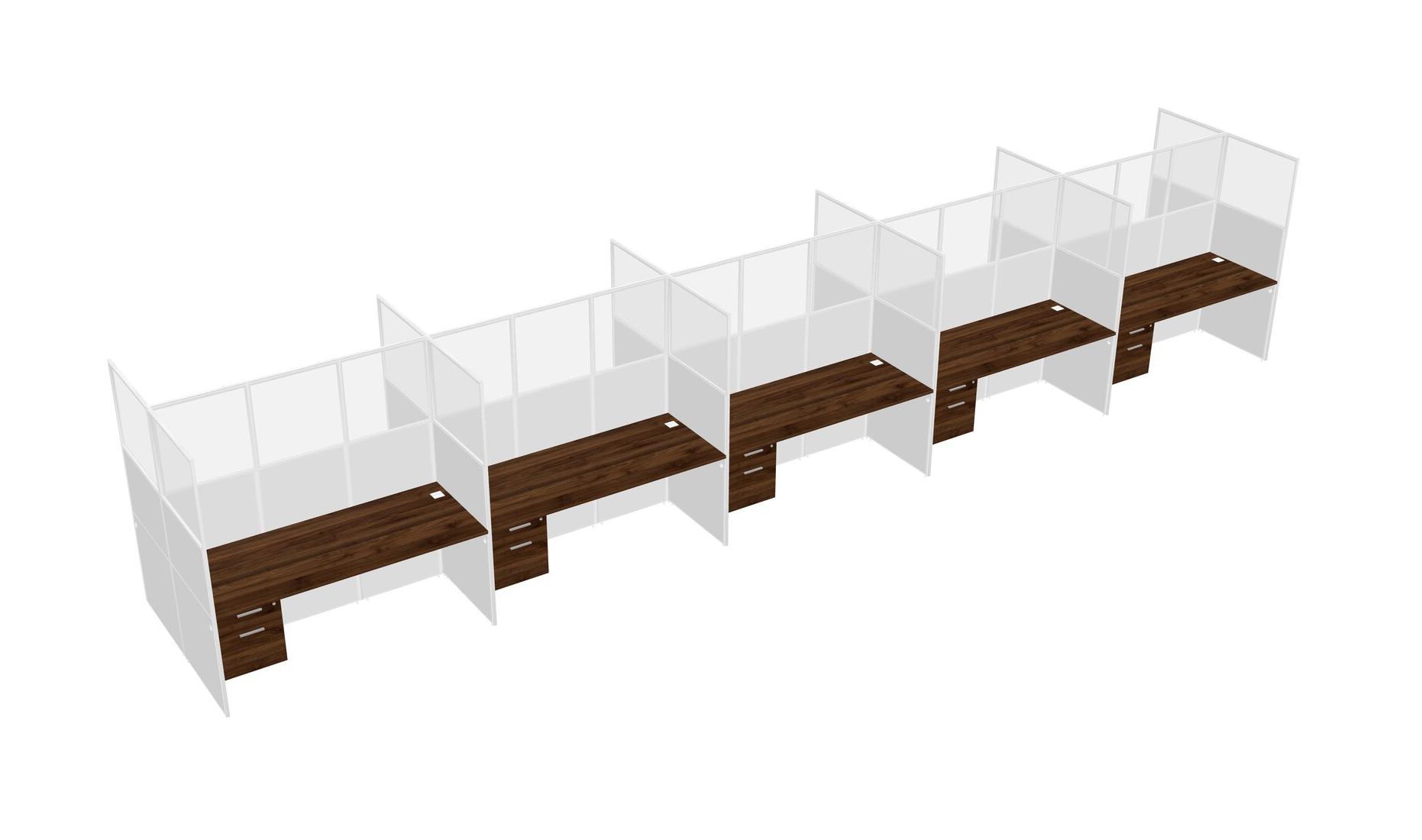 Columbia Walnut Shared Rectangular Office Cubicle Panel System With Hanging Drawers For 10 Persons