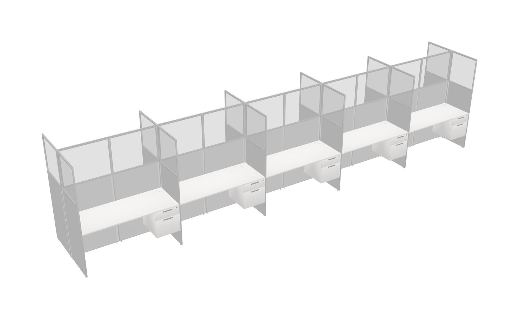 White Shared Rectangular Office Cubicle Panel System With Hanging Drawers For 10 Persons