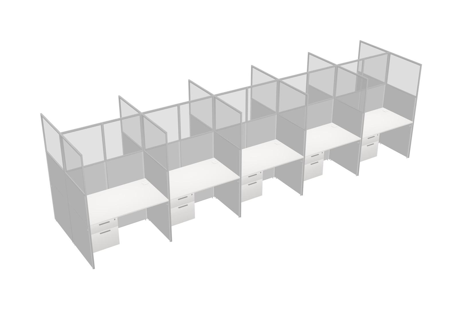 White Shared Rectangular Office Cubicle Panel System With Hanging Drawers For 10 Persons