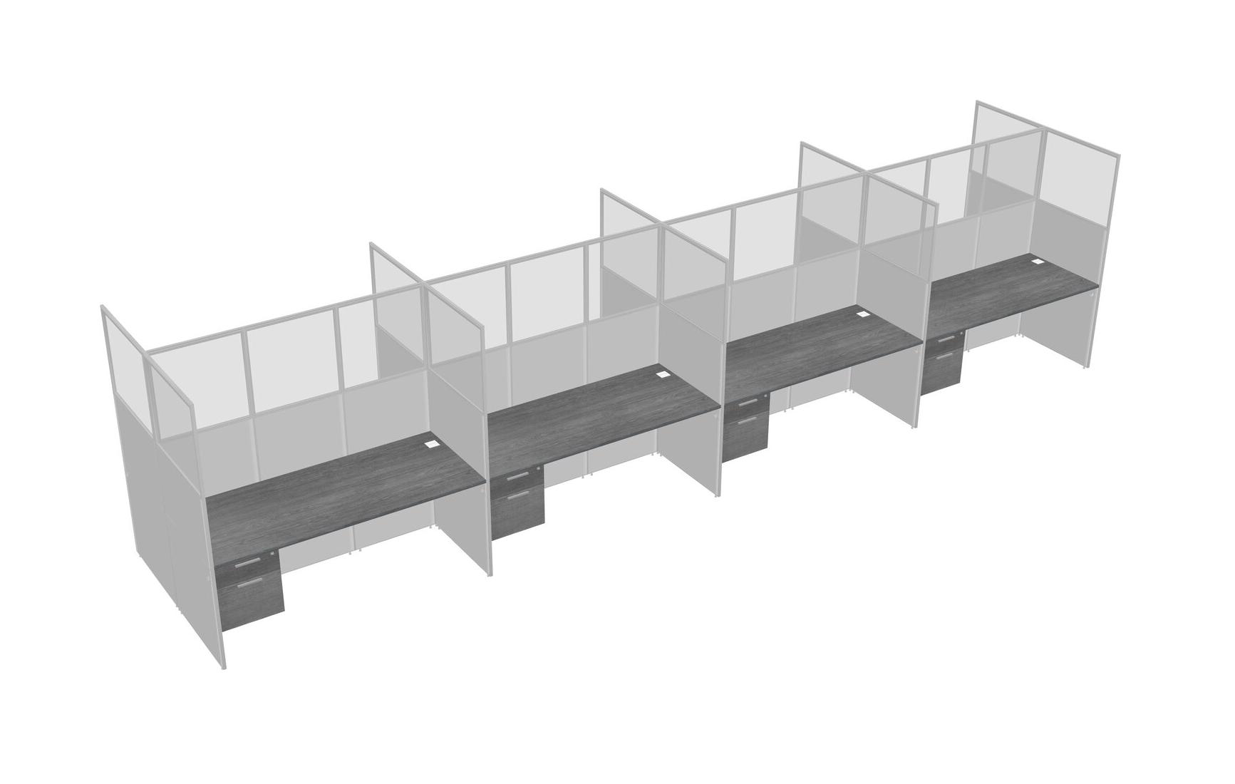Grey Shared Rectangular Office Cubicle Panel System With Hanging Drawers For 8 Persons