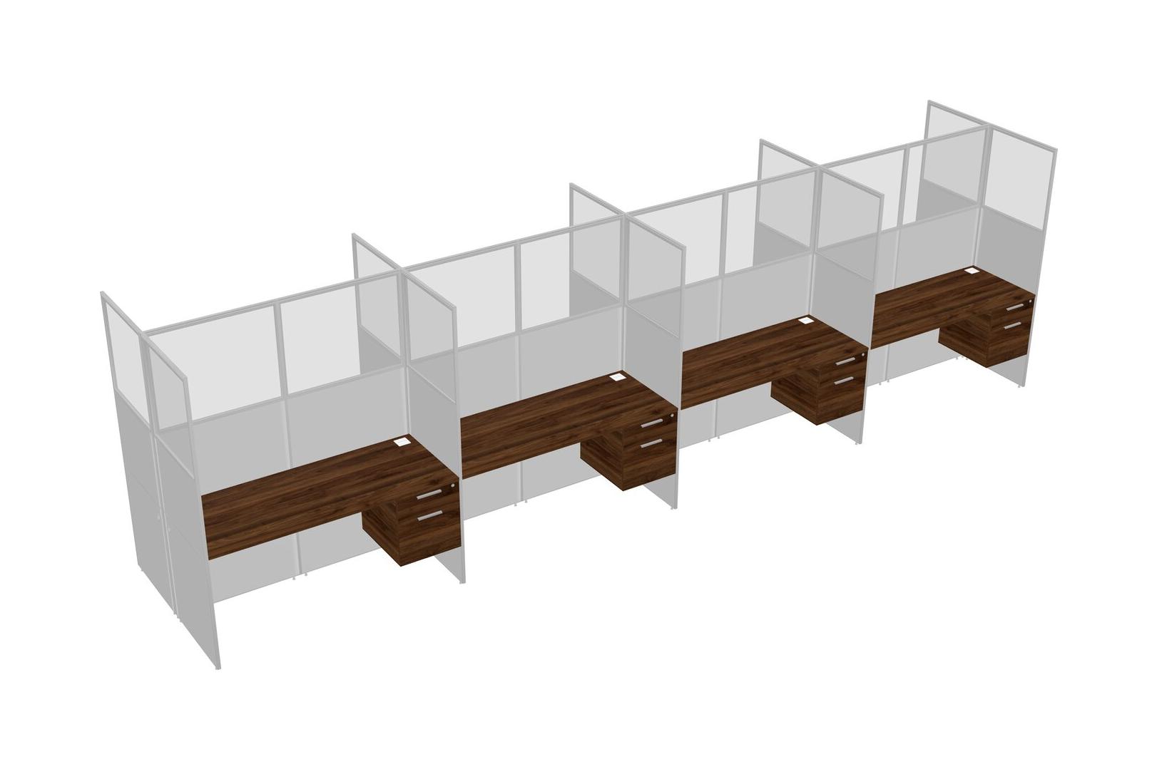 Columbia Walnut Shared Rectangular Office Cubicle Panel System With Hanging Drawers For 8 Persons
