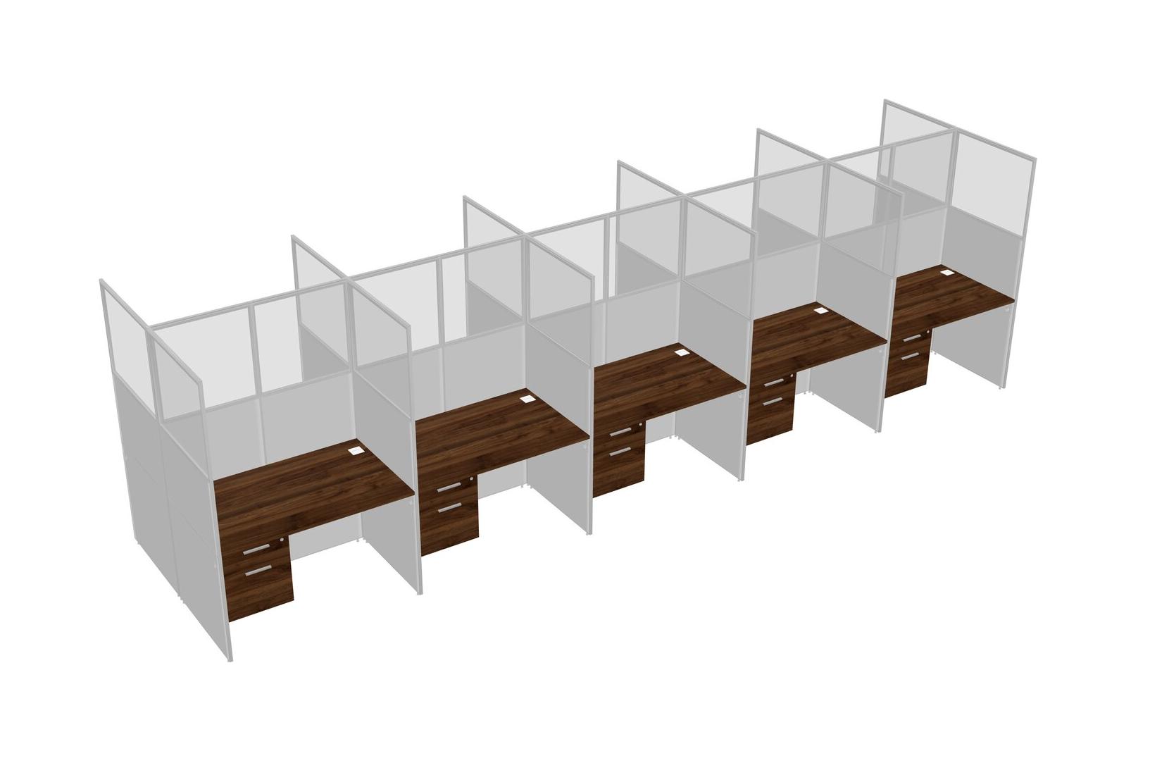 Columbia Walnut Shared Rectangular Office Cubicle Panel System With Hanging Drawers For 10 Persons