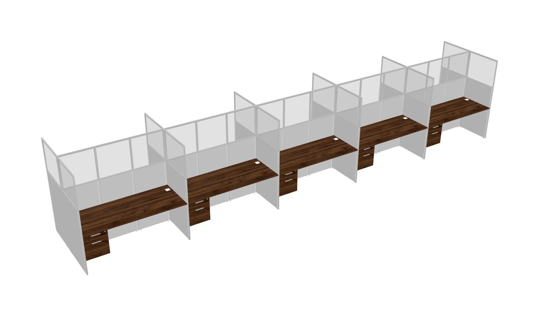 Columbia Walnut Shared Rectangular Office Cubicle Panel System With Hanging Drawers For 10 Persons