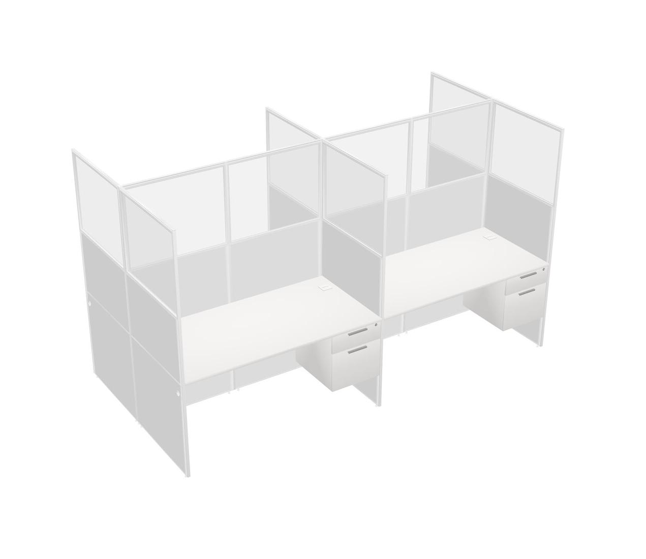 White Shared Rectangular Office Cubicle Panel System With Hanging Drawers For 4 Persons