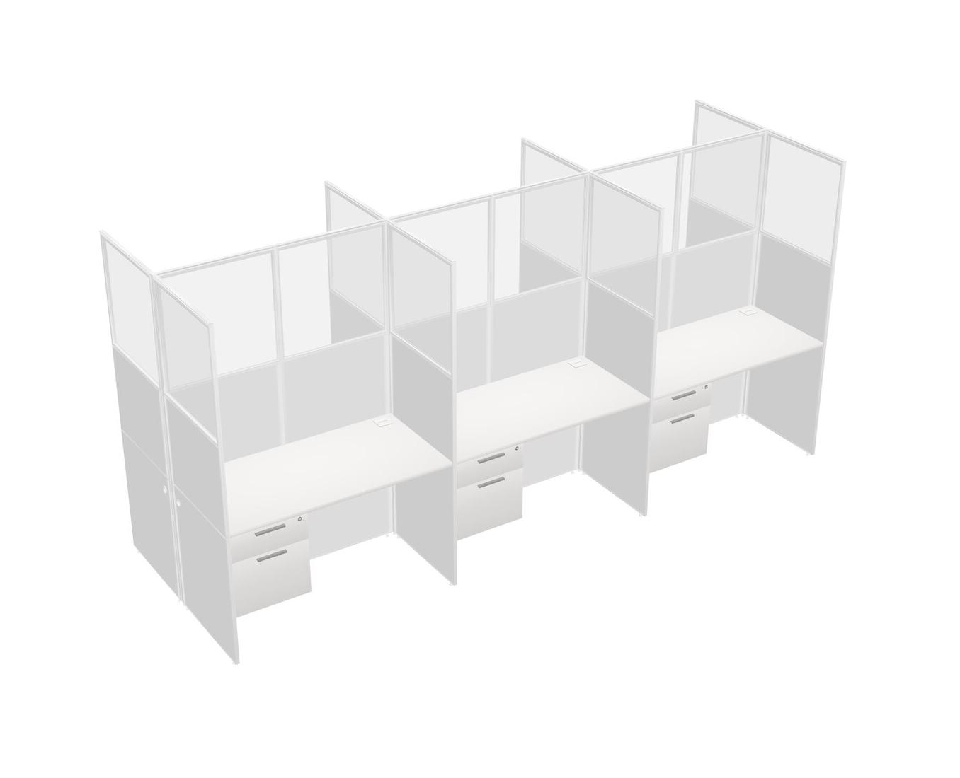 White Shared Rectangular Office Cubicle Panel System With Hanging Drawers For 6 Persons