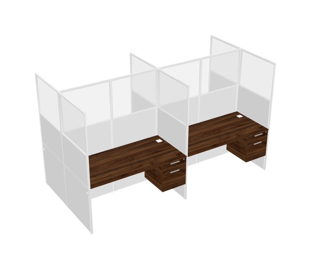 Columbia Walnut Shared Rectangular Office Cubicle Panel System With Hanging Drawers For 4 Persons