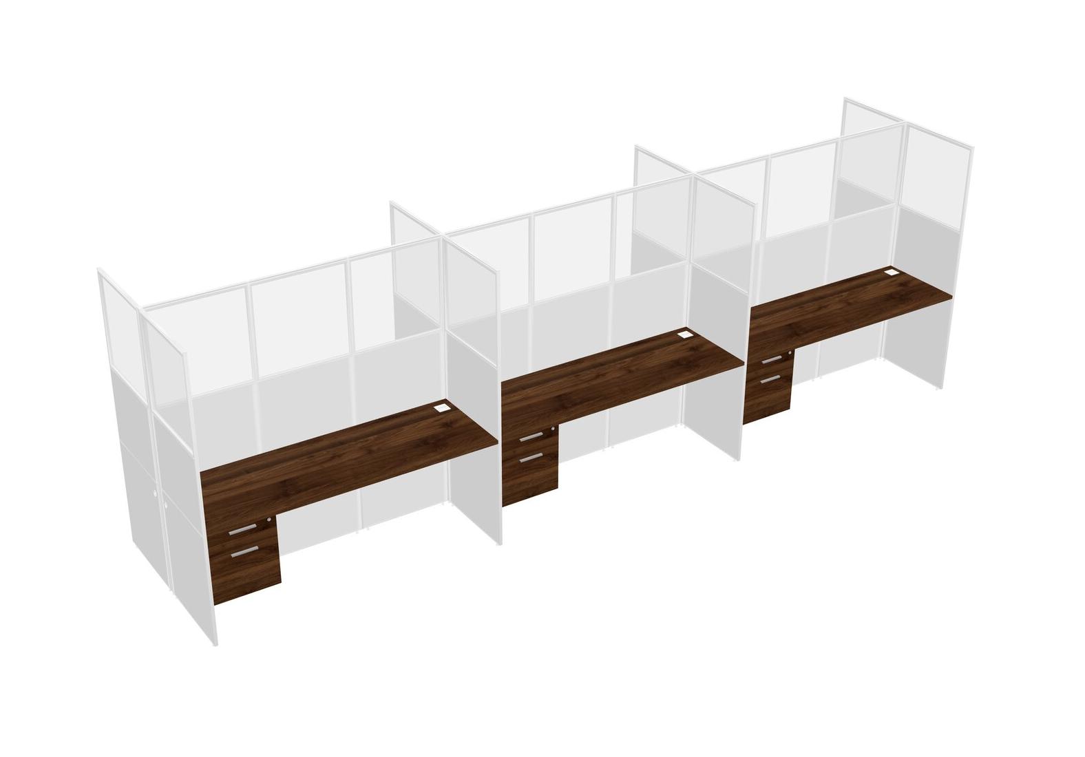 Columbia Walnut Shared Rectangular Office Cubicle Panel System With Hanging Drawers For 6 Persons