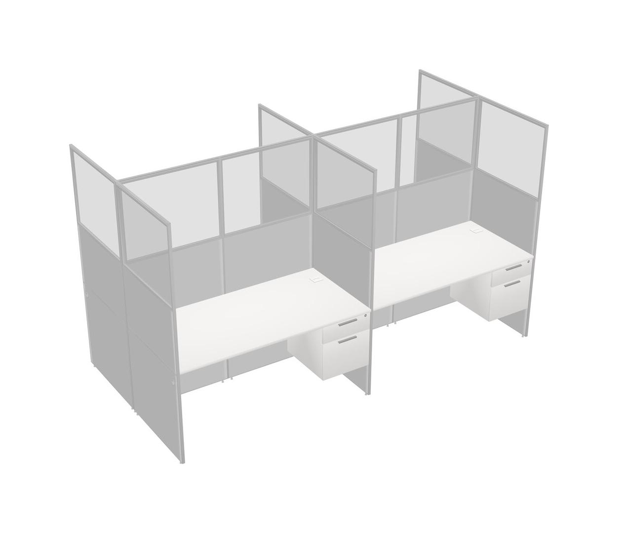 White Shared Rectangular Office Cubicle Panel System With Hanging Drawers For 4 Persons