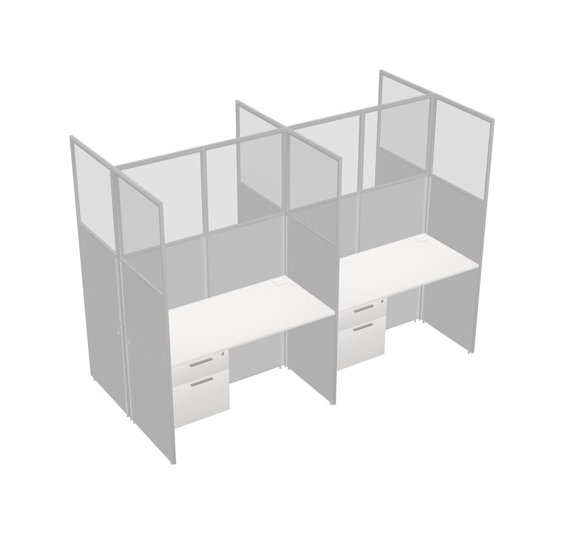 White Shared Rectangular Office Cubicle Panel System With Hanging Drawers For 4 Persons