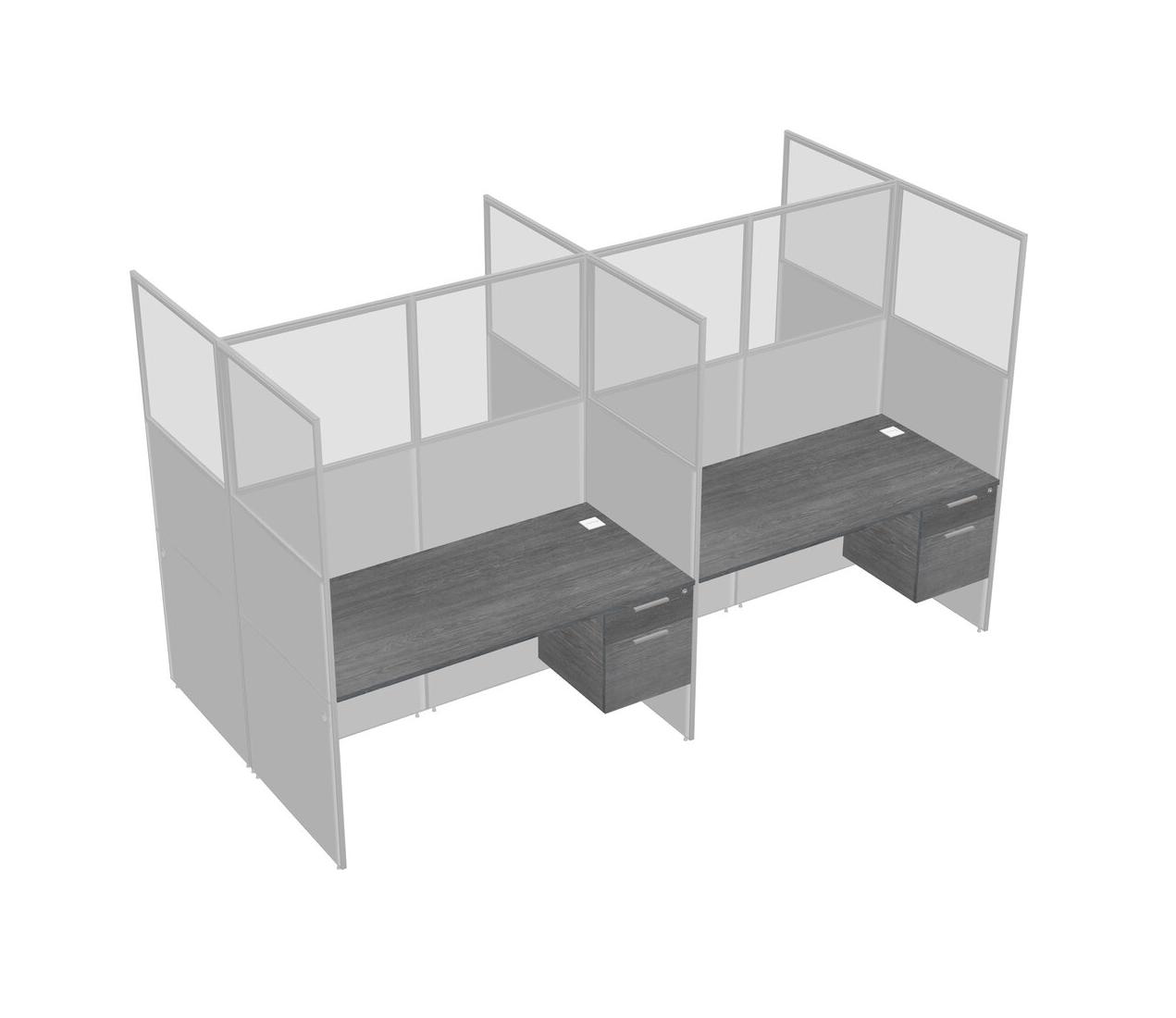 Grey Shared Rectangular Office Cubicle Panel System With Hanging Drawers For 4 Persons