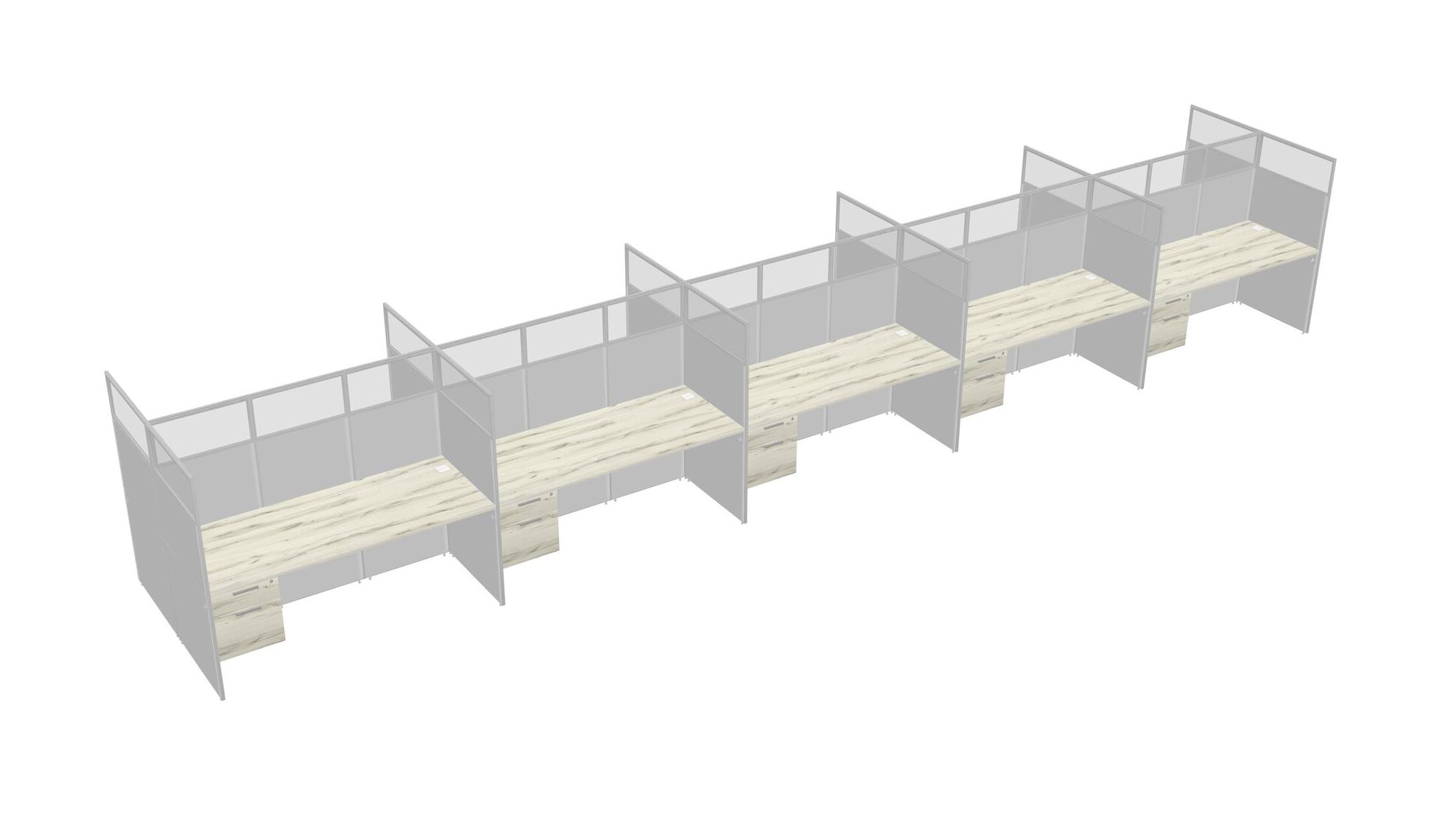 Heinne Holz Shared Rectangular Office Cubicle Panel System With Hanging Drawers For 10 Persons