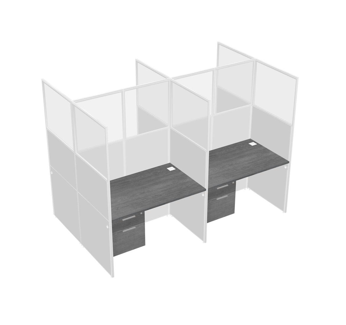 Grey Shared Rectangular Office Cubicle Panel System With Hanging Drawers For 4 Persons