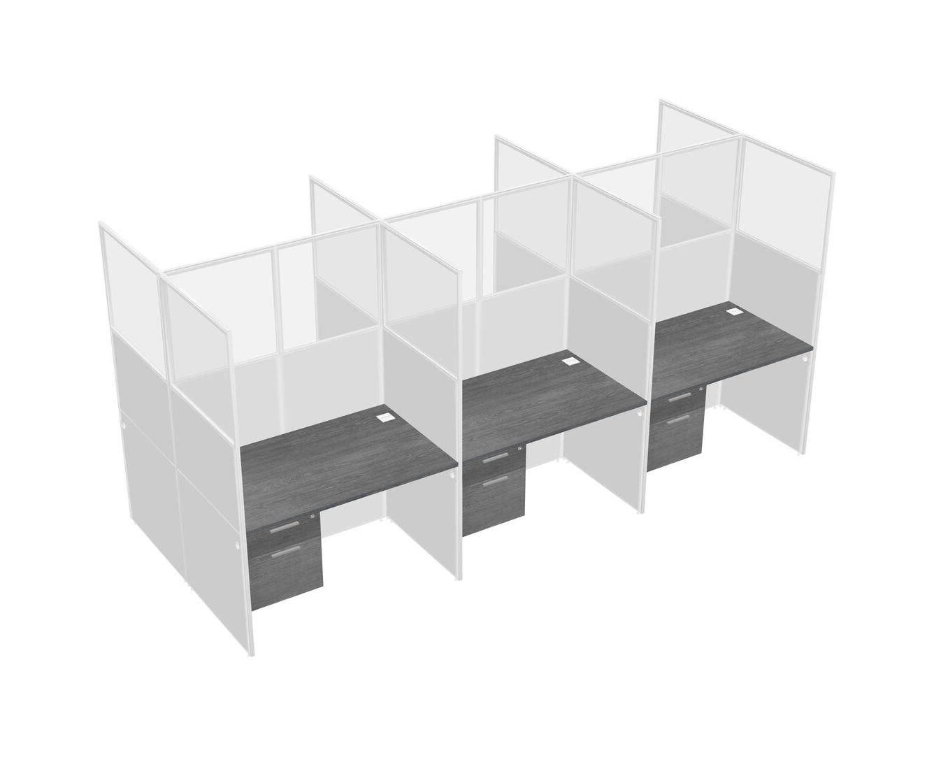 Grey Shared Rectangular Office Cubicle Panel System With Hanging Drawers For 6 Persons