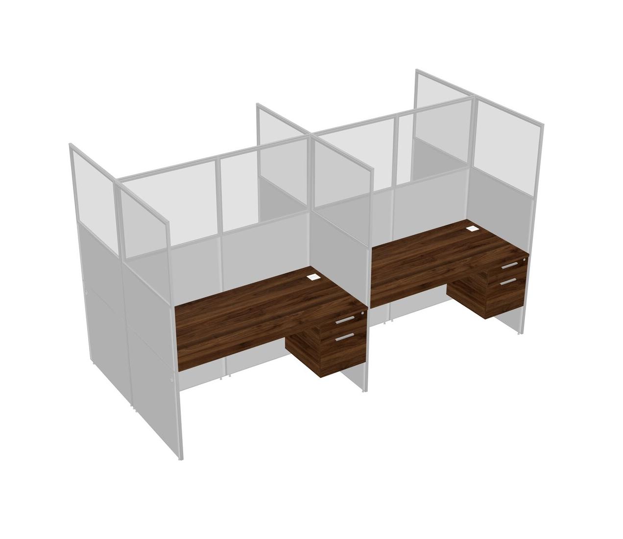 Columbia Walnut Shared Rectangular Office Cubicle Panel System With Hanging Drawers For 4 Persons