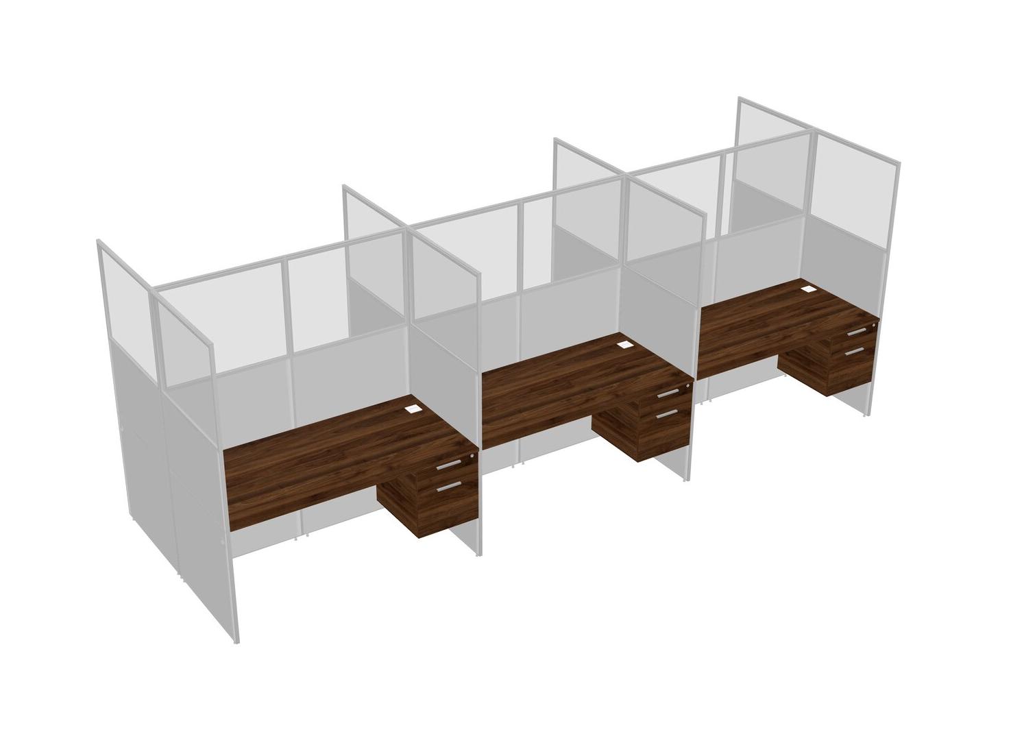 Columbia Walnut Shared Rectangular Office Cubicle Panel System With Hanging Drawers For 6 Persons